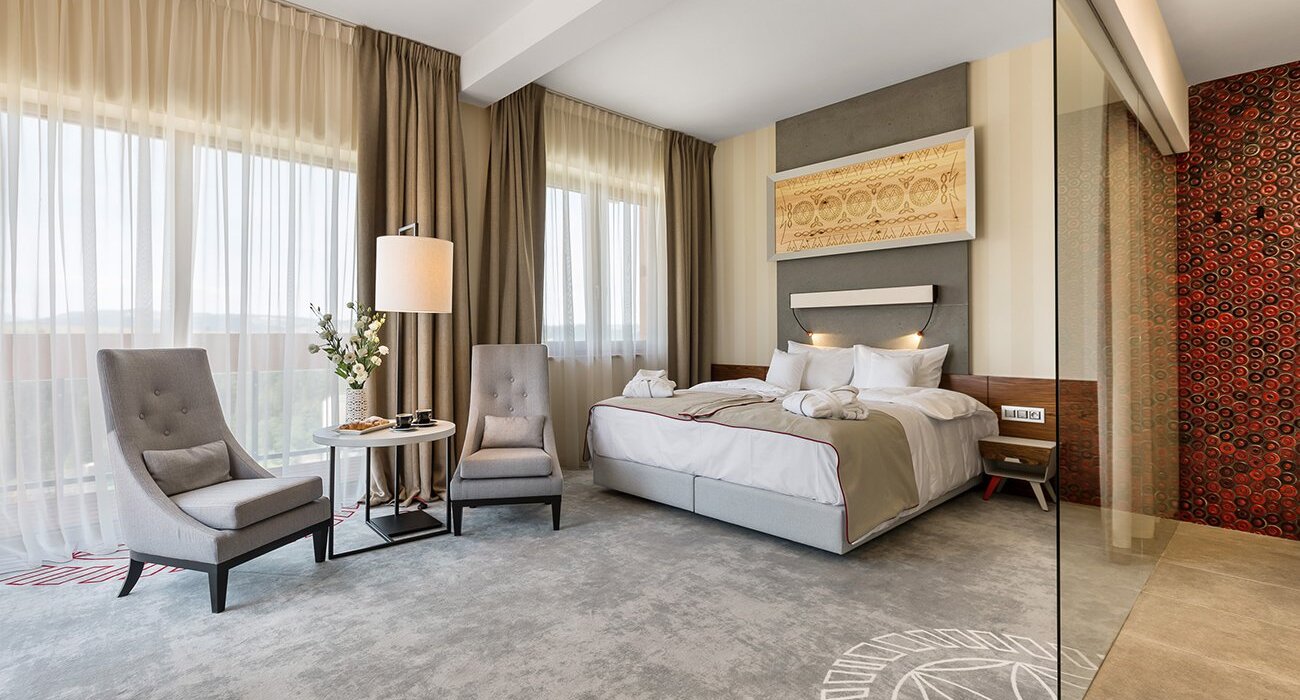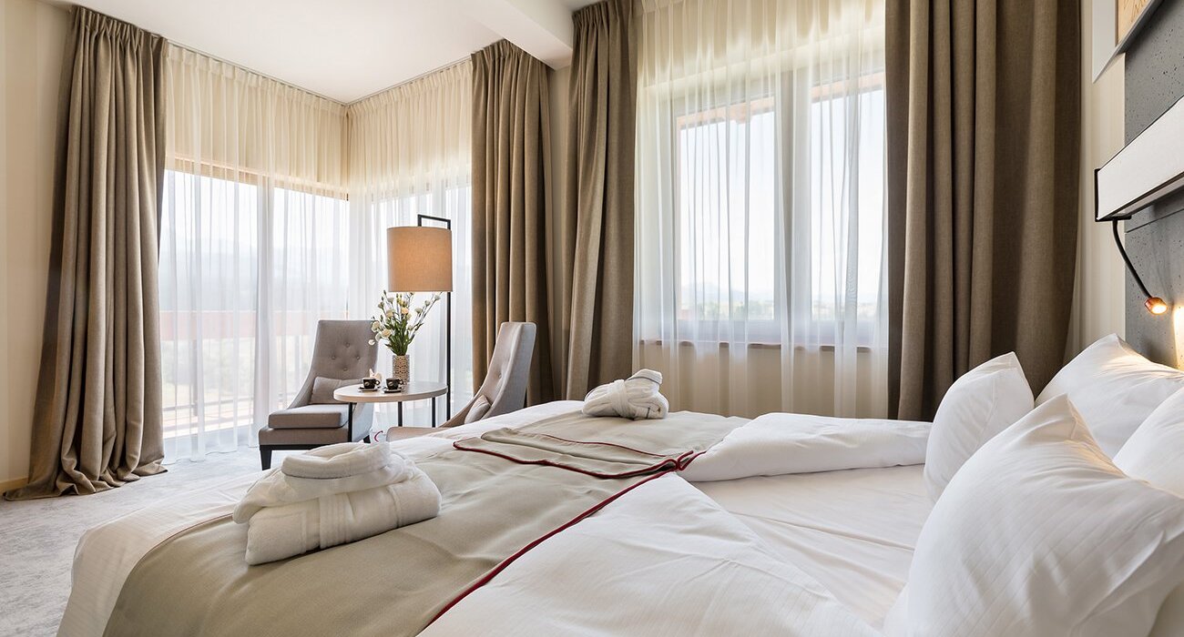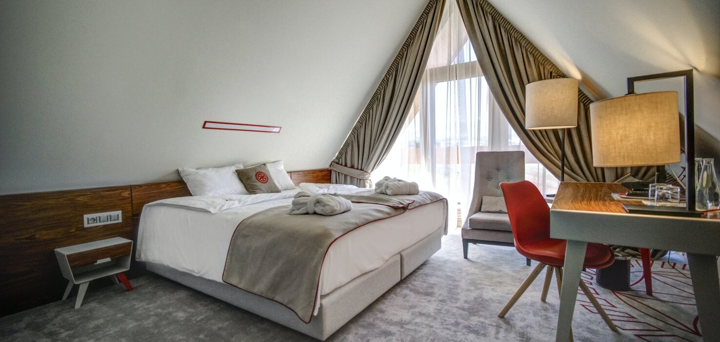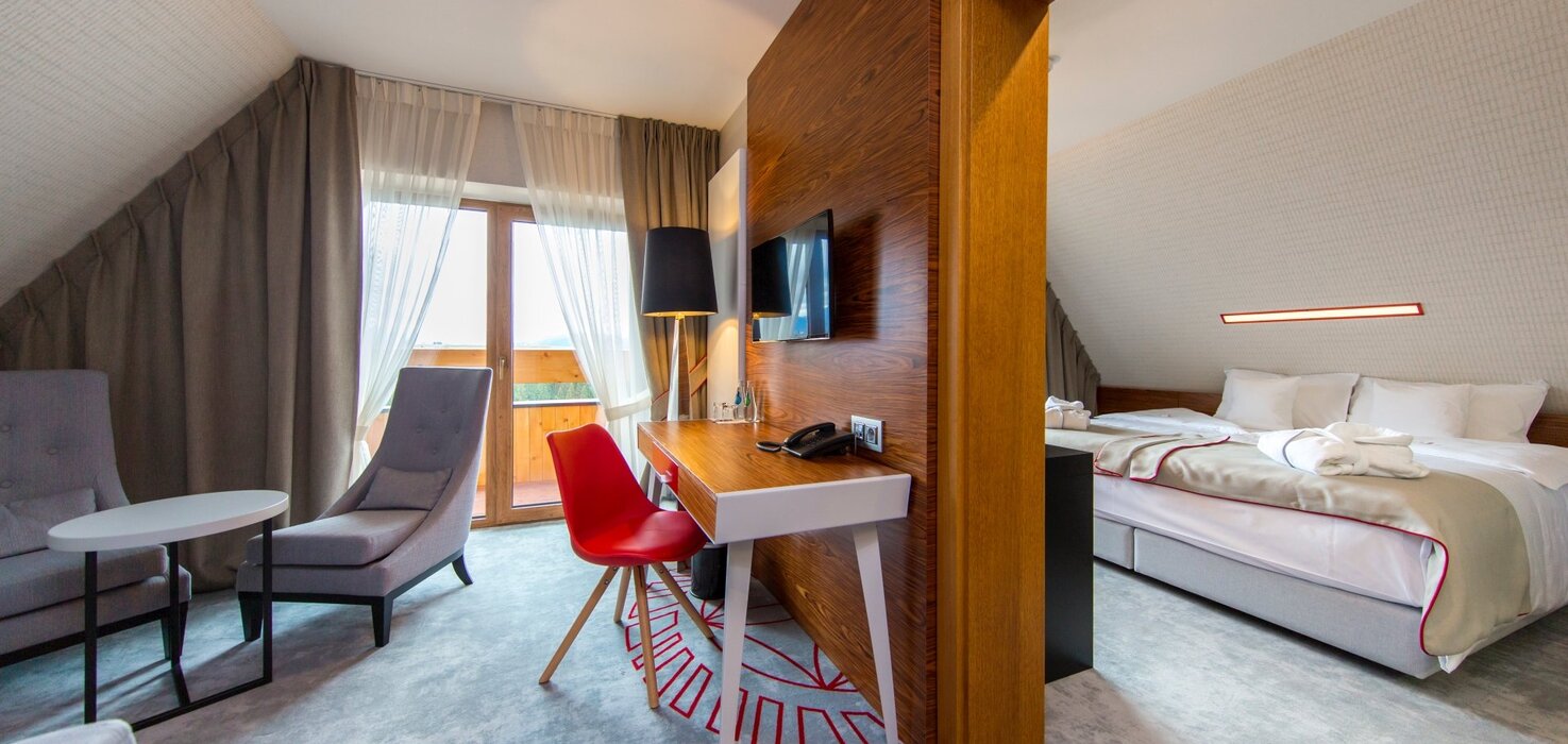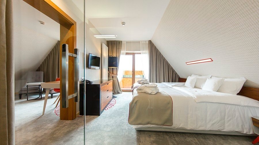Nasze najczęściej wybierane pokoje, bardzo cenione przez pary odwiedzające nas na przedłużone weekendy, a także przez gości, którzy swój czas lubią spędzać w hotelu, korzystając z jego dodatkowych możliwości, takich jak pobyty rehabilitacyjne, SPA, czy odnowa biologiczna. Widok na Tatry z pokojowego tarasu jest dopełnieniem każdego aktywnego dnia. Zaprojektowany dla 2 osób z możliwością dostawki.